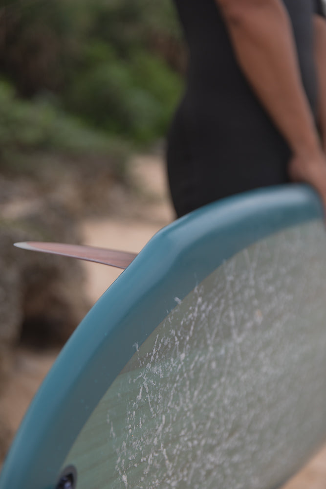 利用真空技術壓合了雙層玻璃纖維和極薄天然木皮,創造出堅固耐用的輕型衝浪板。